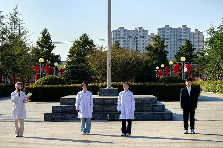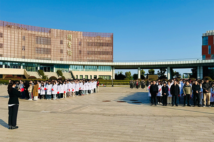 10月29日上午,我院于博爱广场举行“红色旗帜引航向,百年党史润心田”国旗下的誓言主题升国旗仪式。党委副书记、副院长王磊,党委学生工作部(处)、人民武装部负责人赵丹,药学部师生代表及全体辅导员参加。本次仪式由药学部承办。