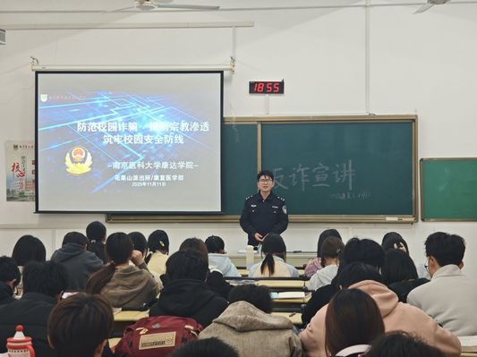 11月12日晚,康复医学部联合保卫处、花果山派出所于12栋406、410教室召开“防范校园诈骗﹒抵制宗教渗透﹒筑牢校园安全防线”专题宣讲会。花果山派出所民警、新生辅导员助理与25级全体新生参会。