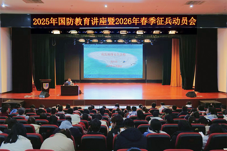 11月26日上午,我院在大礼堂举行2025年国防教育讲座暨2026年春季征兵动员会。南京农业大学国家安全与国防教育中心副主任、军事理论教研室(系)主任徐东波教授应邀担任主讲,学院300余名师生代表共同参加。活动由学院党委人民武装部副部长葛余峰主持。