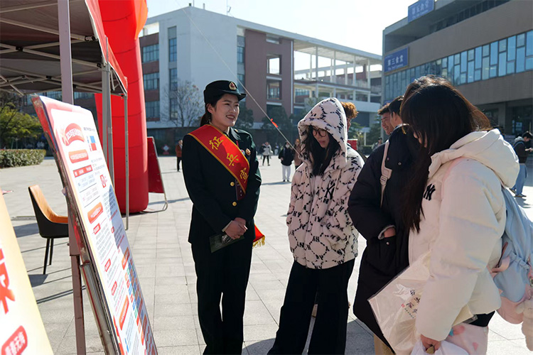 本次活动还同步在树人广场设置了征兵宣传服务站与军事主题互动体验区。征兵宣传员为同学们提供一对一政策咨询,详细解读2026年春季征兵的相关政策。国防知识问答、军事技能体验等环节形式生动、趣味盎然,吸引了众多同学参与,有效增强了国防教育的实效性与感染力。